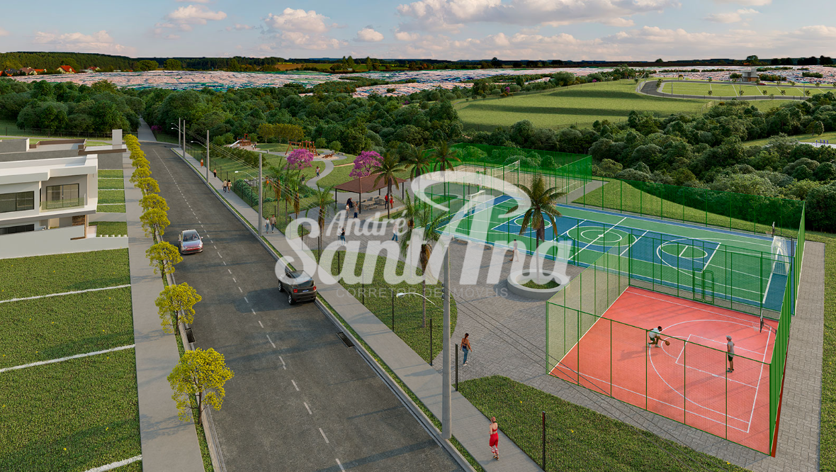 Serão lotes residenciais e comerciais a partir de 250m² e todo o seu perímetro do loteamento será fechado com alambrado. Acesso monitorado por câmeras e apenas 1 saída para veículos.