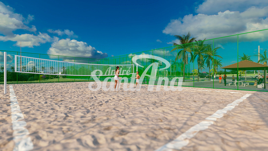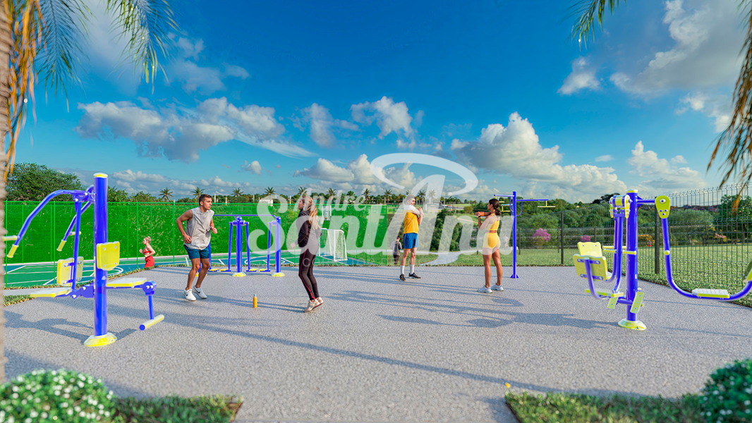 A Área de lazer contará com 2 Quadras Poliesportivas, Quadra de Beach Tennis e Vôlei de areia, Academia ao ar livre, Pista de caminhada, Ciclofaixa, Playgrounds e Pet Place e ainda mais de 30 mil m² de Área Verde, Lagos e Praças.